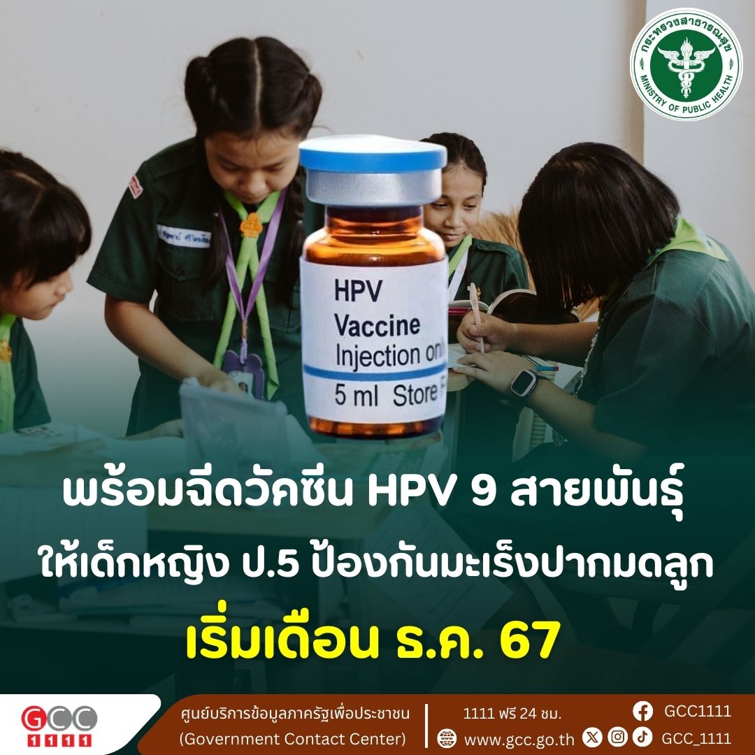 สธ. พร้อมฉีดวัคซีนเอชพีวี 9 สายพันธุ์ให้เด็กหญิง ป.5 ทั่วประเทศ ป้องกันมะเร็งปากมดลูก เริ่ม ธ.ค. 67