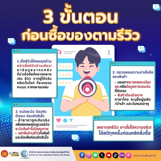 สำนักงานคณะกรรมการคุ้มครองผู้บริโภค แนะนำ 3 ขั้นตอน เช็กก่อนซื้อของตามรีวิว