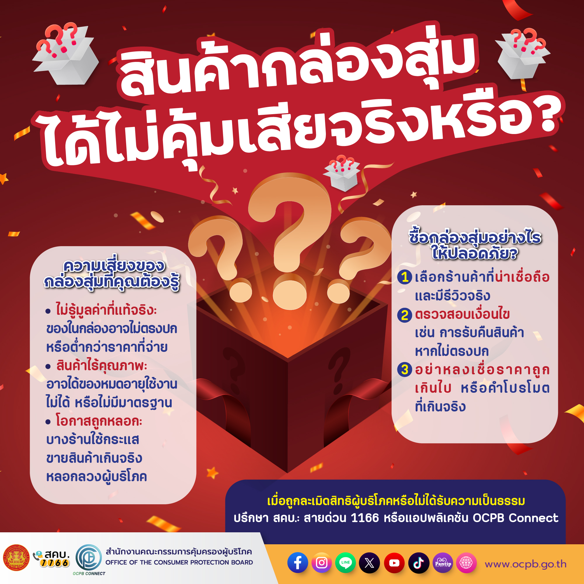 สคบ. แนะนำผู้บริโภคพิจารณาอย่างรอบคอบก่อนซื้อสินค้ากล่องสุ่ม