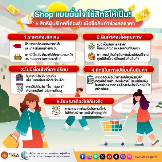 สำนักงานคณะกรรมการคุ้มครองผู้บริโภค แนะนำ 5 สิทธิผู้บริโภคที่ต้องรู้ เมื่อซื้อสินค้าช่วงลดราคา