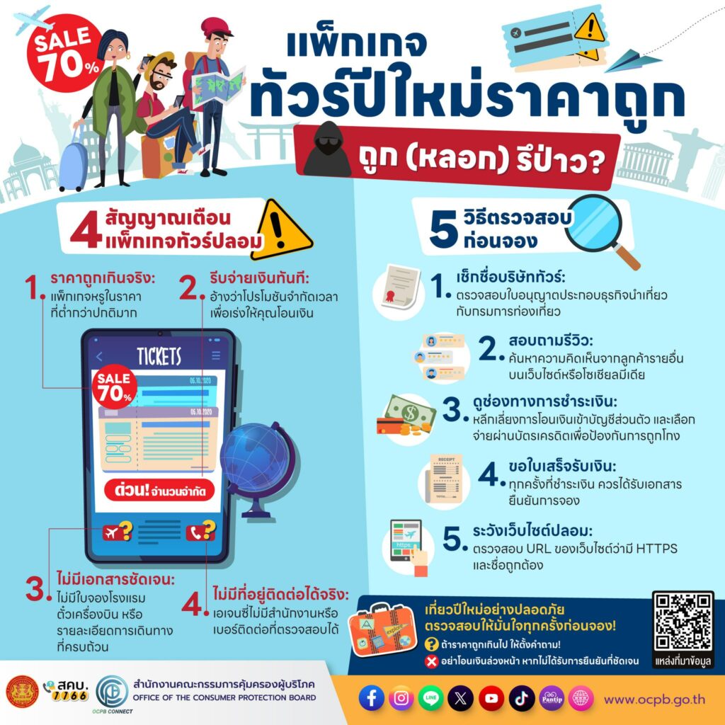 สำนักงานคณะกรรมการคุ้มครองผู้บริโภค แจ้งเตือนแพ็กเกจทัวร์ปีใหม่ราคาถูก