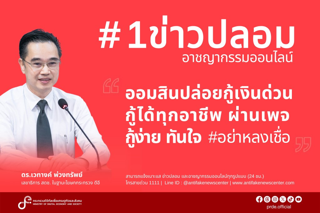 สามารถแจ้งเบาะแส ข่าวปลอม และอาชญากรรมออนไลน์ทุกรูปแบบ โทรสายด่วน 1111 (24 ชม.)