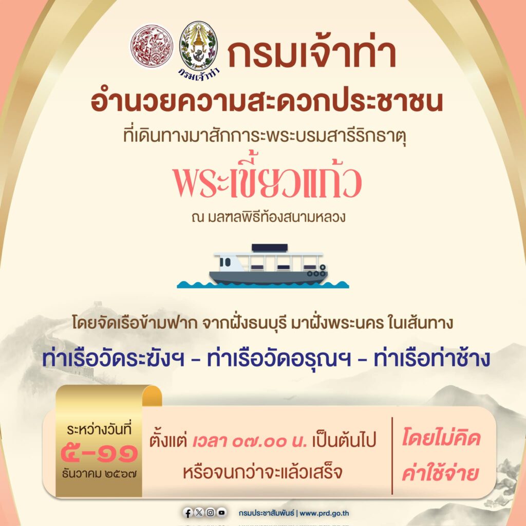 กรมเจ้าท่า อำนวยความสะดวกประชาชน ที่เดินทางมาสักการะพระบรมสารีริกธาตุ (พระเขี้ยวแก้ว) ณ มลฑลพิธีท้องสนามหลวง
