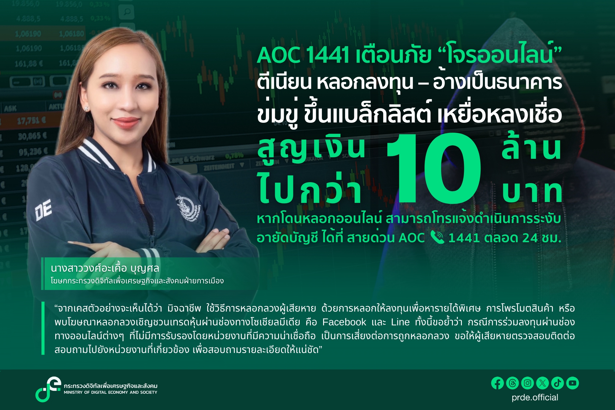 AOC 1441 เตือนภัย “โจรออนไลน์” หลอกลงทุน – อ้างเป็นธนาคาร เหยื่อหลงเชื่อ สูญเงินกว่า 10 ล้านบาท