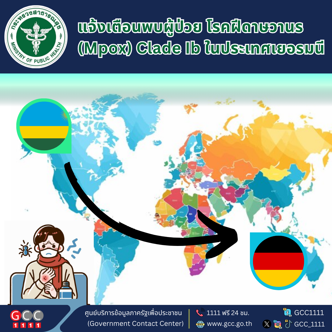 กรมควบคุมโรค แจ้งเตือนพบผู้ป่วยโรคฝีดาษวาus (Mpox) Clade Ib ในประเทศเยอรมนี ที่เดินทางกลับมาจากประเทศรวันดา