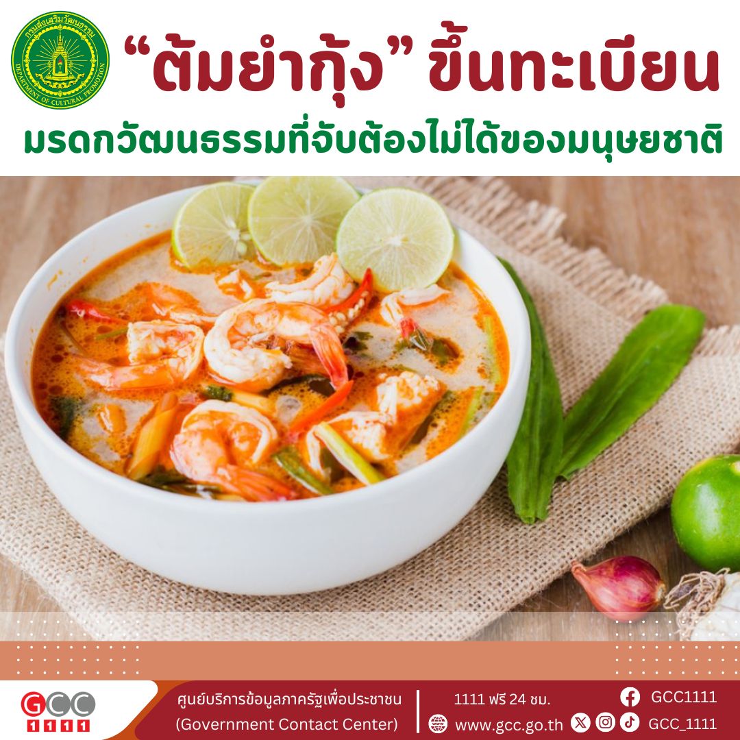 นางสาวสุดาวรรณ หวังศุภกิจโกศล รัฐมนตรีว่าการกระทรวงวัฒนธรรม (รมว.วธ.) เปิดเผยว่า ที่ประชุมคณะกรรมการระหว่างรัฐบาลเพื่อการสงวนรักษามรดกวัฒนธรรมที่จับต้องไม่ได้ ครั้งที่ 19 (The nineteenth session of the Intergovernmental Committee for the Safeguarding of the Intangible Cultural Heritage: IGC-ICH) ขององค์การการศึกษา วิทยาศาสตร์และวัฒนธรรมแห่งสหประชาชาติ หรือ UNESCO เมื่อวันที่ 3 ธันวาคม พ.ศ. 2567 ระหว่างเวลา 14.50 – 16.30 น. (เวลาท้องถิ่น) ณ นครอซุนซิออน (Asuncion) สาธารณรัฐปารากวัย หรือตรงกับ วันที่ 4 ธันวาคม 2567 ระหว่างเวลา 00.50 – 02.30 น. (ของประเทศไทย) มีมติรับรองให้ “ต้มยำกุ้ง” (Tomyum Kung) ขึ้นทะเบียนเป็นรายการตัวแทนมรดกวัฒนธรรมที่จับต้องไม่ได้ของมนุษยชาติ (Representative List of the Intangible Cultural Heritage of Humanity : RL) ประจำปี 2567 ต่อจากรายการ โขน นวดไทย โนรา และ สงกรานต์ ในปีที่ผ่านมา