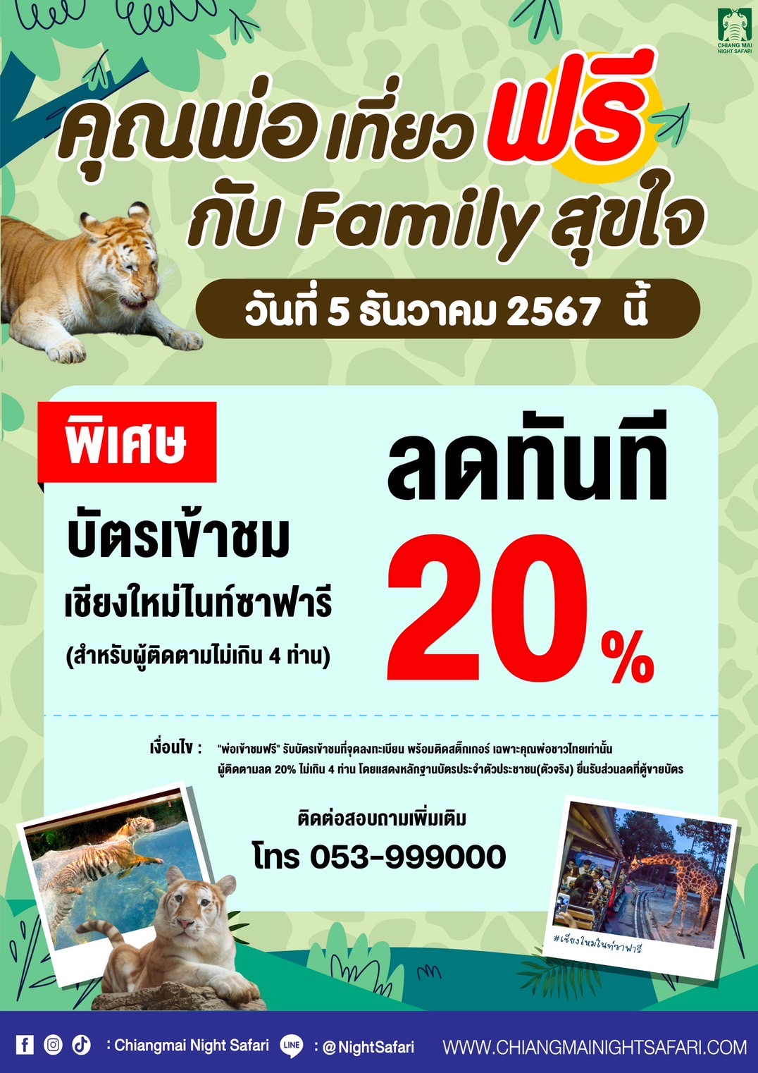 เชียงใหม่ไนท์ซาฟารี เปิดให้คุณพ่อเข้าชมฟรี วันที่ 5 ธันวาคม 2567