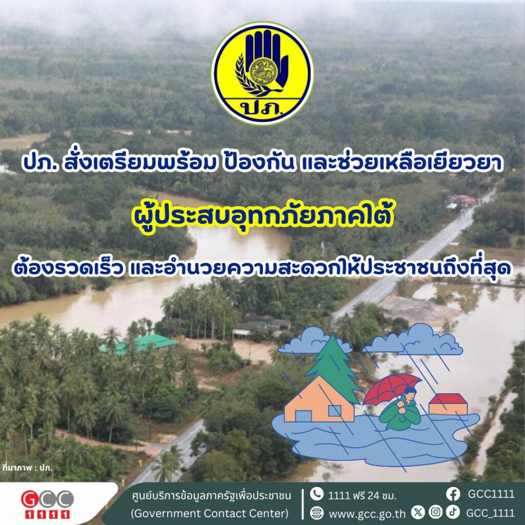 ปภ. สั่งเตรียมพร้อม ป้องกัน และช่วยเหลือเยียวยาผู้ประสบอุทกภัยภาคใต้ ต้องรวดเร็ว