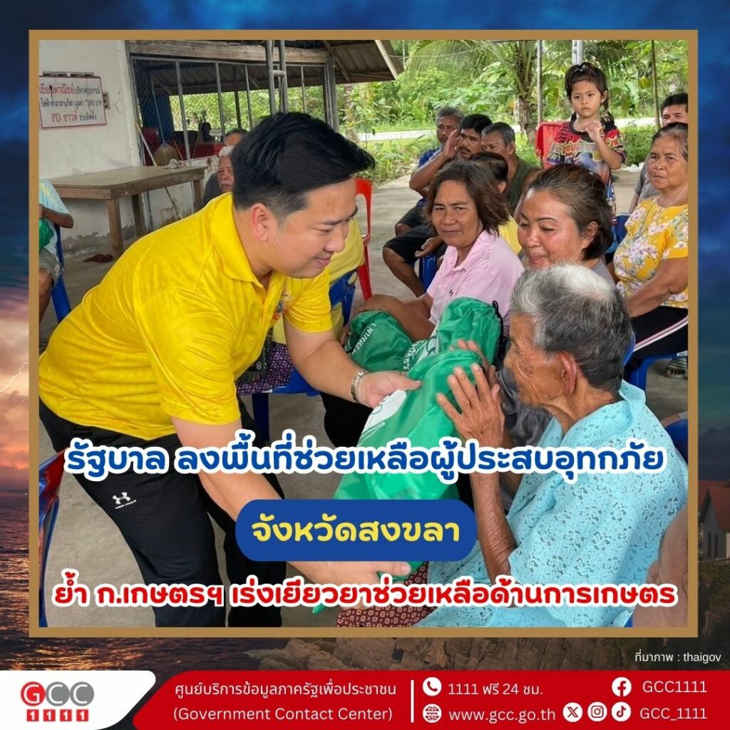 รัฐบาล ลงพื้นที่ช่วยเหลือผู้ประสบอุทกภัยจังหวัดสงขลา เผยชาวบ้านขอบคุณรัฐบาลไม่ทอดทิ้งประชาชนในยามประสบอุทกภัย ย้ำ ก.เกษตรฯ เร่งเยียวยาช่วยเหลือด้านการเกษตร