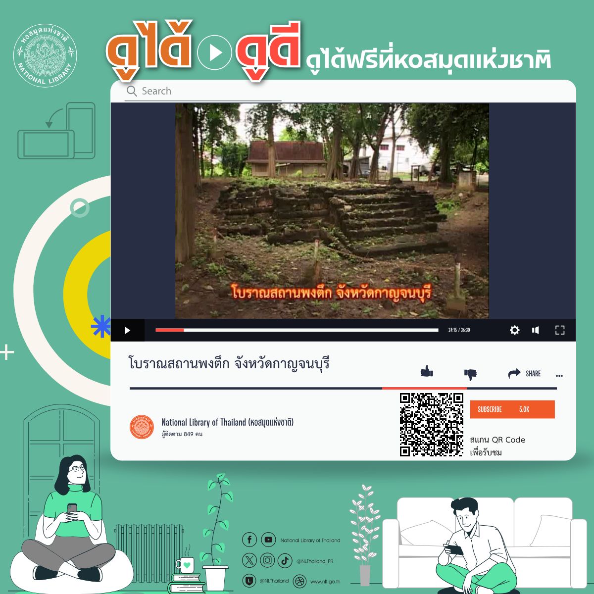 หอสมุดแห่งชาติ นำเสนอรายการ “ดูได้ ดูดีดูได้ฟรีที่หอสมุดแห่งชาติ” โดยนำวีดิทัศน์ต่างๆ ที่หอสมุด รวมถึงกรมศิลปากร ได้จัดทำหรือเผยแพร่ มาให้รับชมใหม่เป็นประจำทุกวันอาทิตย์ จึงขอนำเสนอวีดิทัศน์ ตอน “โบราณสถานพงตึก จังหวัดกาญจนบุรี” สามารถรับชมได้ที่ https://vdo.nlt.go.th/videoall-create/detail/20907