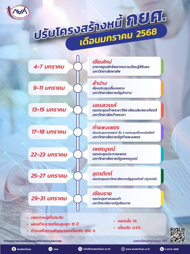 กยศ. ขอเชิญผู้กู้ยืม เข้าร่วมงานปรับโครงสร้างหนี้ต่างจังหวัด เดือนมกราคม 2568