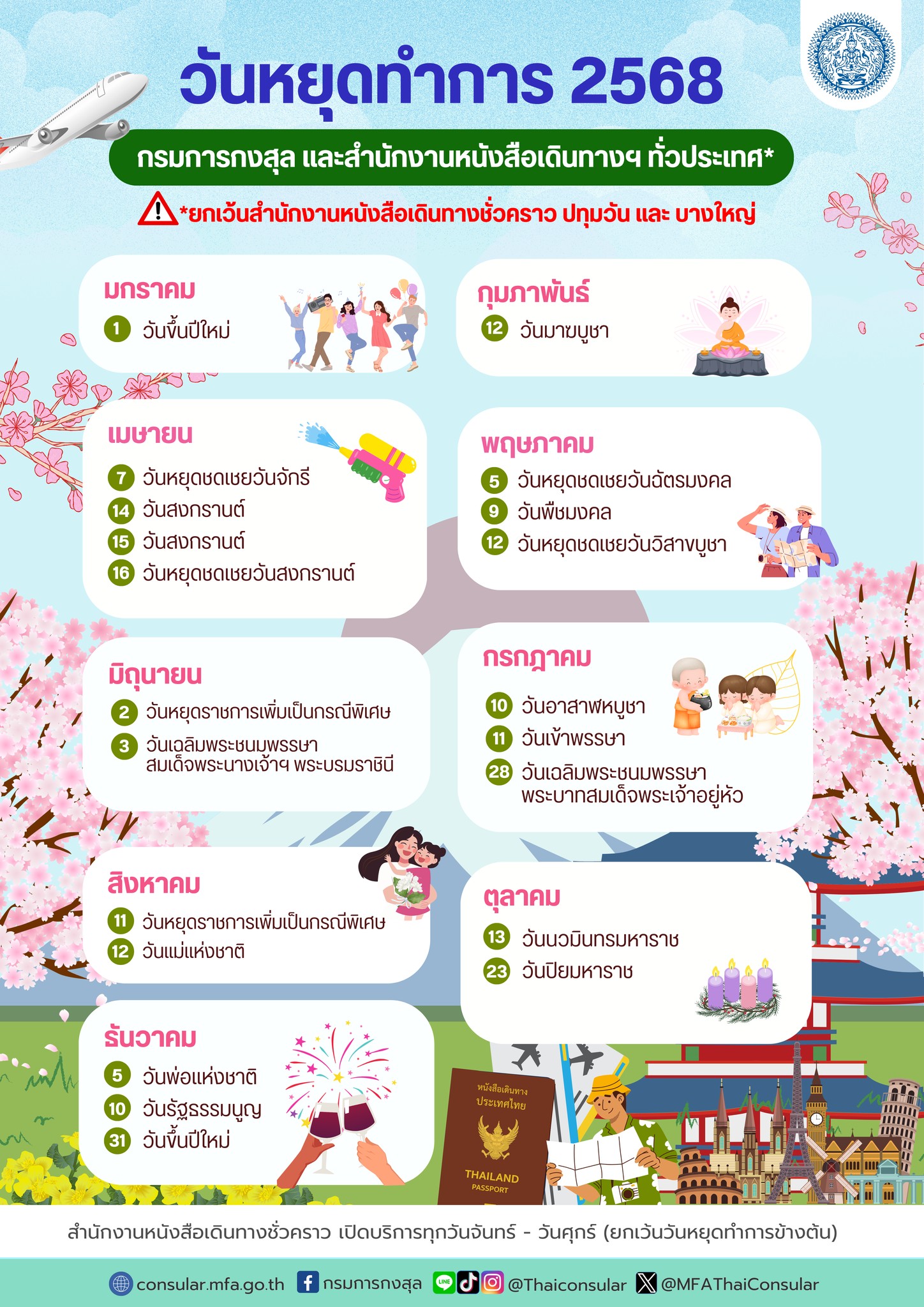 กรมการกงสุล ประกาศวันหยุดทำการ ปี 2568