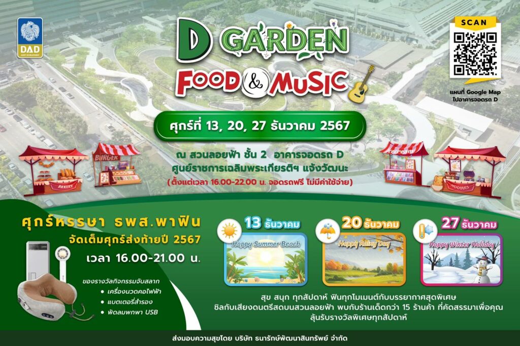 DAD เชิญชวนเที่ยวงาน “D Garden Food & Music” ทุกวันศุกร์ที่ 13, 20 และ 27 ธันวาคม 2567