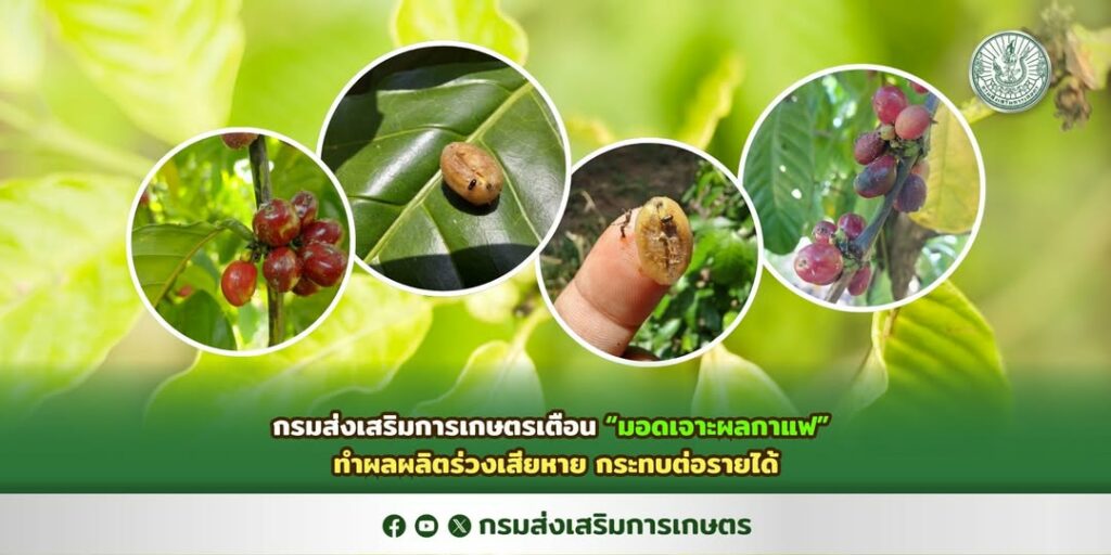 กรมส่งเสริมการเกษตร เตือน “มอดเจาะผลกาแฟ” ทำผลผลิตร่วงเสียหาย กระทบต่อรายได้