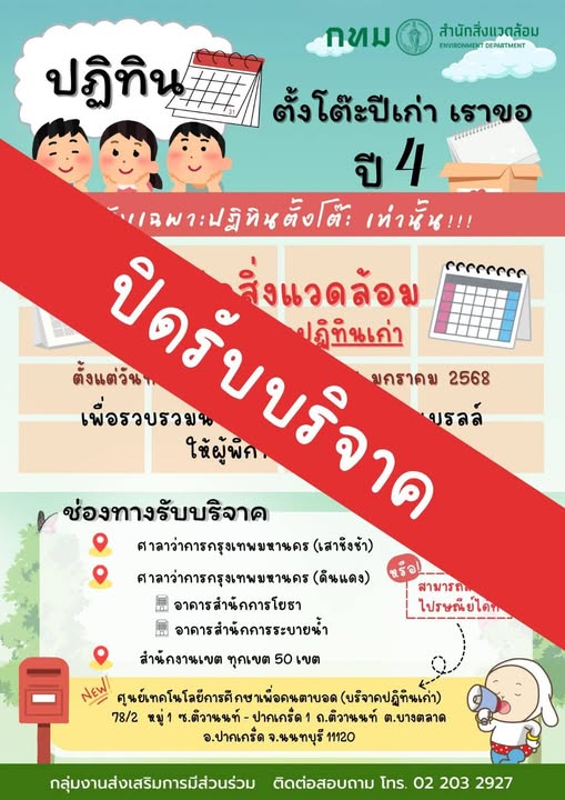 สำนักสิ่งแวดล้อม ขอแจ้งปิดรับบริจาคปฏิทินตั้งโต๊ะเก่า ในกิจกรรม “ปฏิทินตั้งโต๊ะปีเก่า เราขอ ปี 4”