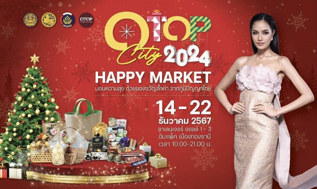 กระทรวงมหาดไทย จัดงาน “OTOP CITY 2024” ภายใต้ธีมงาน “มอบความสุข ด้วยของขวัญล้ำค่า จากภูมิปัญญาไทย” ระหว่างวันที่ 14 – 22 ธันวาคม 2567 เวลา 10.00 – 21.00 น. ณ ศูนย์แสดงสินค้าและการประชุมอิมแพ็ค เมืองทองธานี จังหวัดนนทบุรี