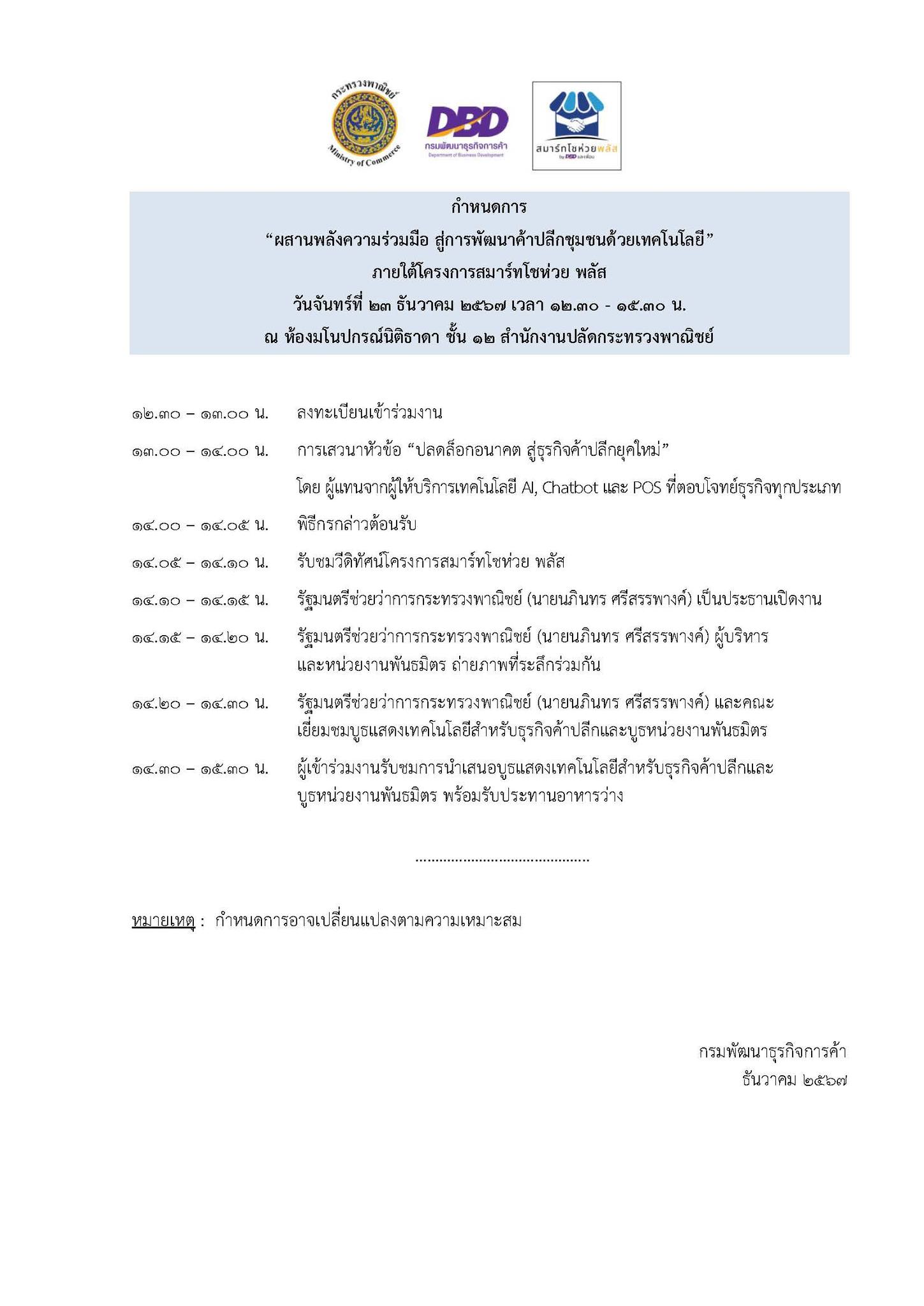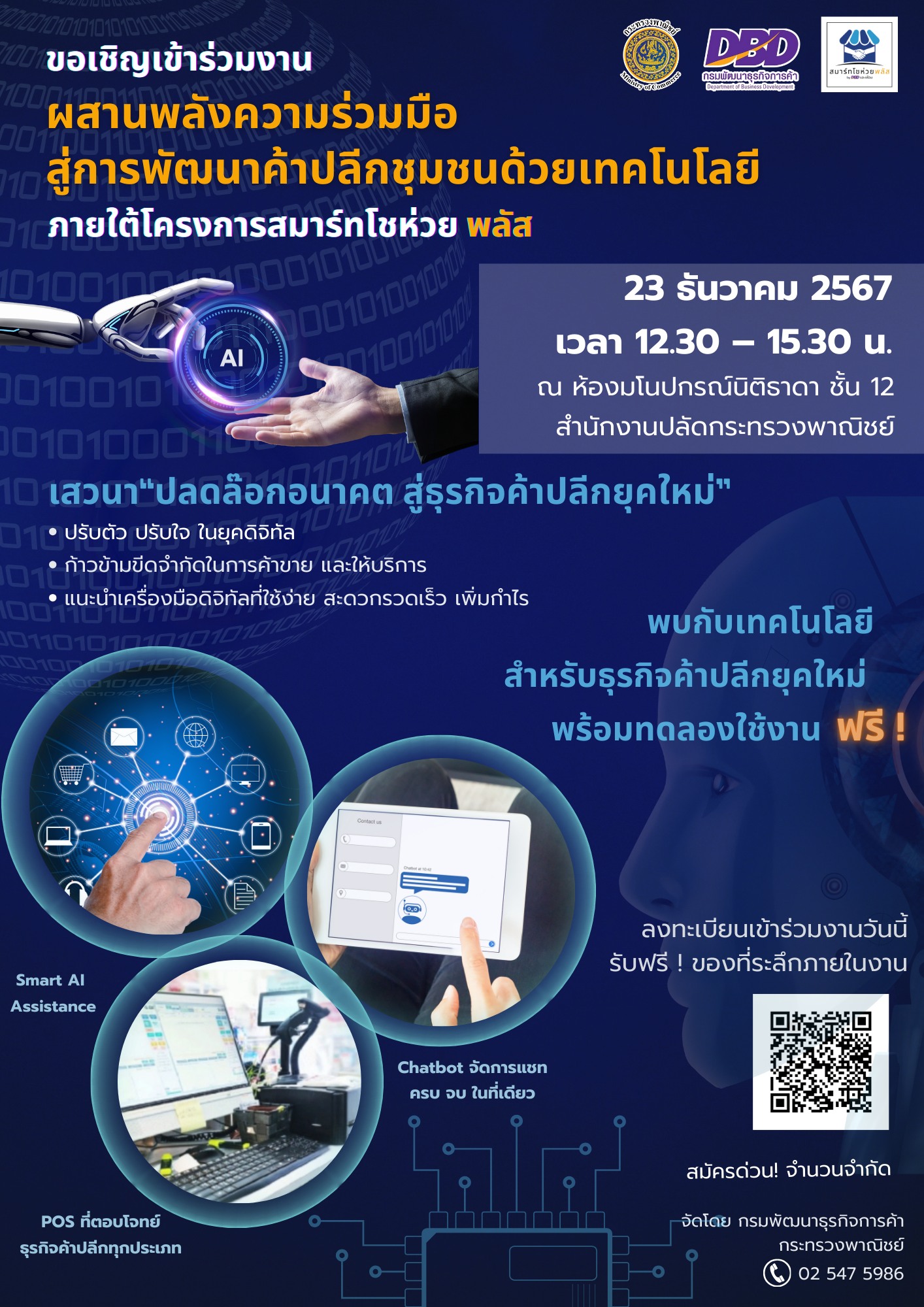 กรมพัฒนาธุรกิจการค้า เชิญร่วมกิจกรรม ผสานพลังความร่วมมือ สู่การพัฒนาค้าปลีกชุมชนด้วยเทคโนโลยี