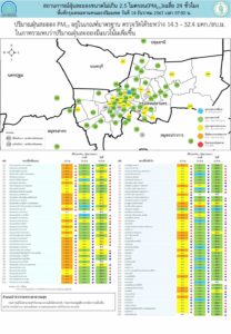 - กรุงเทพมหานครและปริมณฑล ภาพรวมอยู่ในเกณฑ์ดี ตรวจวัดได้ 14.3 – 32.4 ไมโครกรัมต่อลูกบาศก์เมตร