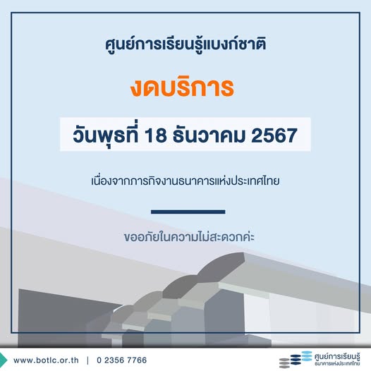 ศูนย์การเรียนรู้แบงก์ชาติ แจ้งงดบริการ วันที่ 18 ธันวาคม 2567 ข่าวสารกิจกรรม ศูนย์การเรียนรู้แบงก์ชาติ แจ้งงดบริการ วันที่ 18 ธันวาคม 2567 ศูนย์การเรียนรู้แบงก์ชาติ แจ้งงดบริการ วันที่ 18 ธันวาคม 2567 เนื่องจากภารกิจงานธนาคารแห่งประเทศไทย ที่มา : https://shorturl.asia/8mR5T Post Views: 6 FacebookFacebookXTwitterLINELine
