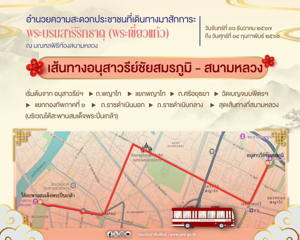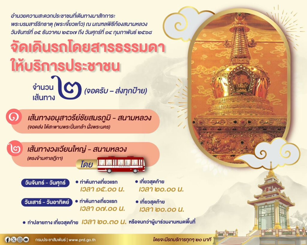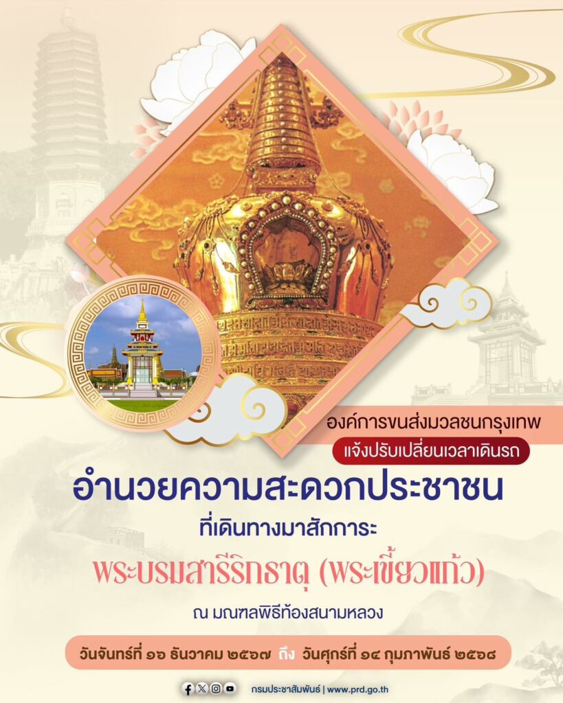ขสมก. แจ้งปรับเปลี่ยนเวลาการเดินรถอำนวยความสะดวกฯ ที่เดินทางมาสักการะพระบรมสารีริกธาตุ (พระเขี้ยวแก้ว)