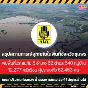 จังหวัดชุมพร สรุปสถานการณ์ประจำวัน พบพื้นที่ประสบอุทกภัยทั้ง 8 อำเภอ