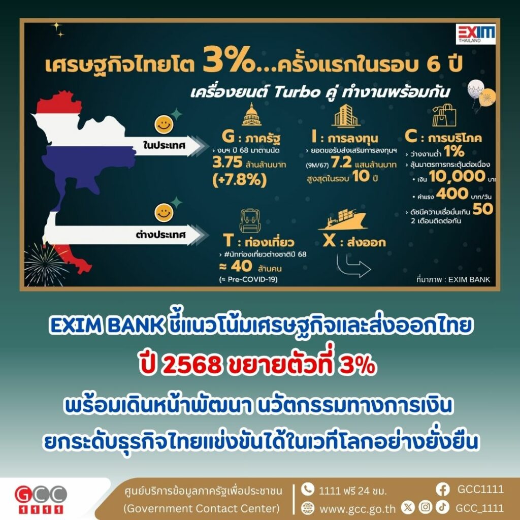 EXIM BANK ชี้แนวโน้มเศรษฐกิจและส่งออกไทยปี 2568 ขยายตัวที่ 3%