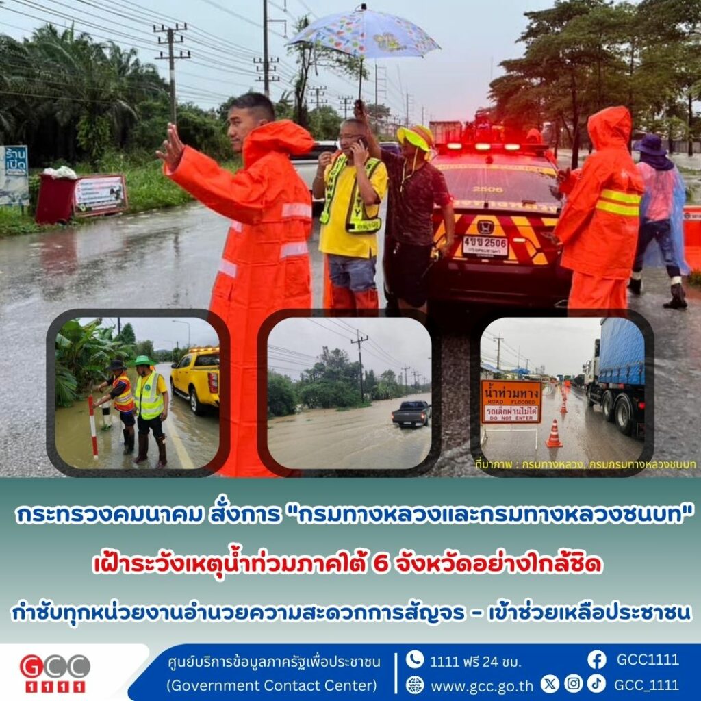 กระทรวงคมนาคม สั่งการ ทล. – ทช. เฝ้าระวังเหตุน้ำท่วมภาคใต้ 6 จังหวัดอย่างใกล้ชิด