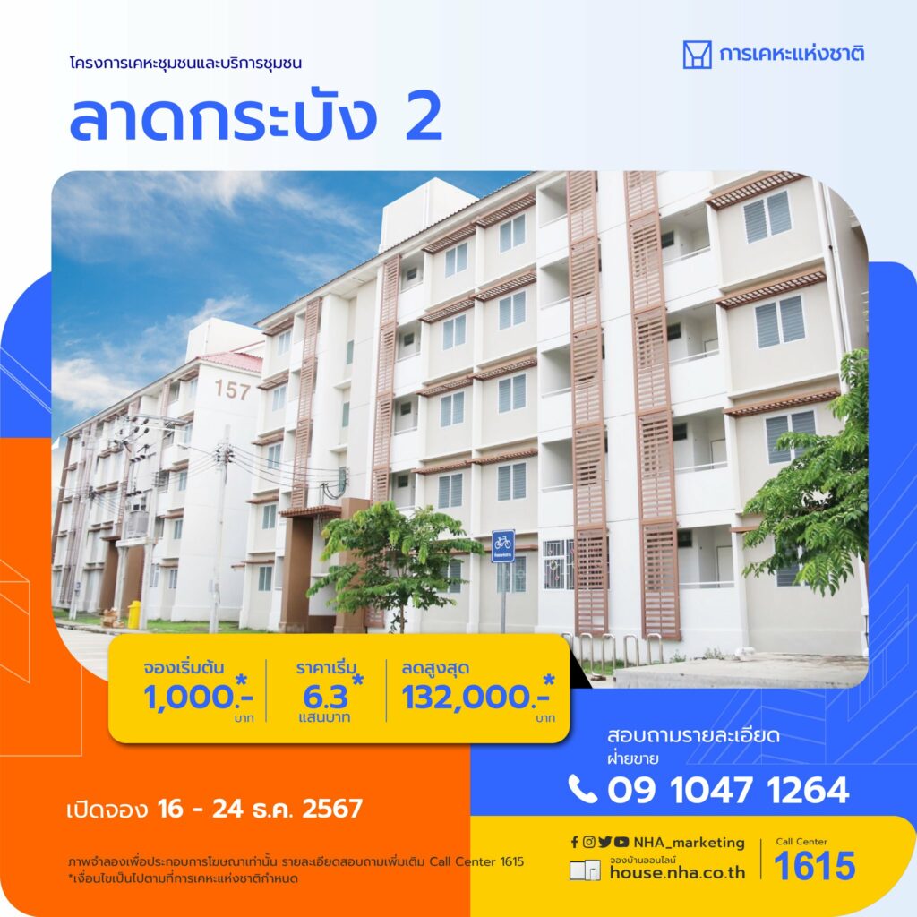 การเคหะแห่งชาติ เปิดจองโครงการเคหะชุมชนและบริการชุมชนลาดกระบัง 2 บัดนี้ – 24 ธันวาคม 2567