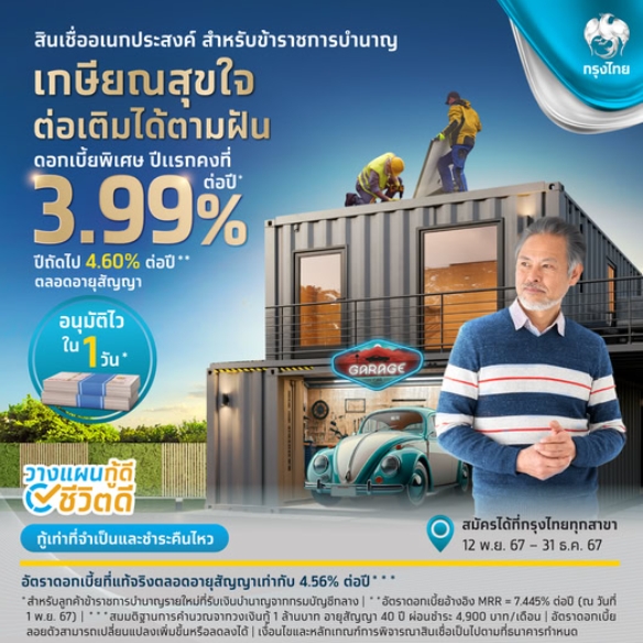 ธนาคารกรุงไทย แนะนำสินเชื่ออเนกประสงค์ สำหรับข้าราชการบำนาญ