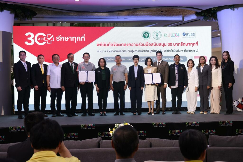 สปสช. รวมพลัง โรบินสันไลฟ์สไตล์ ในเครือเซ็นทรัล รีเทล ร่วมลงนามสนับสนุนพื้นที่ในศูนย์การค้าฯ ให้บริการ “30 บาทรักษาทุกที่” ยกระดับการเข้าถึงการแพทย์สาธารณสุขให้กับคนไทยทุกคนทั่วประเทศ เตรียมให้บริการที่ “โรบินสันไลฟ์สไตล์ สาขาลาดกระบัง” เป็นแห่งแรก