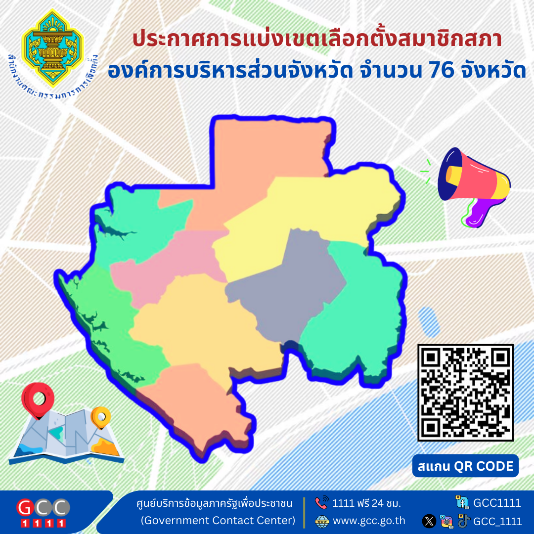 เรื่อง การแบ่งเขตเลือกตั้งสมาชิกสภาองค์การบริหารส่วนจังหวัด จํานวน 76 จังหวัด ด้วยคณะกรรมการการเลือกตั้ง ได้มีประกาศคณะกรรมการการเลือกตั้ง เรื่อง การแบ่งเขตเลือกตั้ง สมาชิกสภาองค์การบริหารส่วนจังหวัด จํานวน 76 จังหวัด เพื่อให้เป็นไปตามมาตรา 19 และมาตรา 20 แห่งพระราชบัญญัติการเลือกตั้งสมาชิกสภาท้องถิ่นหรือผู้บริหารท้องถิ่น พ.ศ. 2562 และที่แก้ไขเพิ่มเติม (ฉบับที่ 2) พ.ศ. 2566 ทั้งนี้ ได้ประกาศในราชกิจจานุเบกษา และมีผลใช้บังคับแล้ว