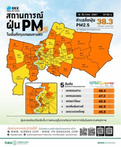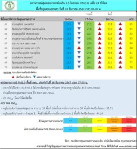 กรุงเทพมหานคร รายงานสถานการณ์ฝุ่นละออง PM 2.5 วันที่ 18 ธันวาคม 2567