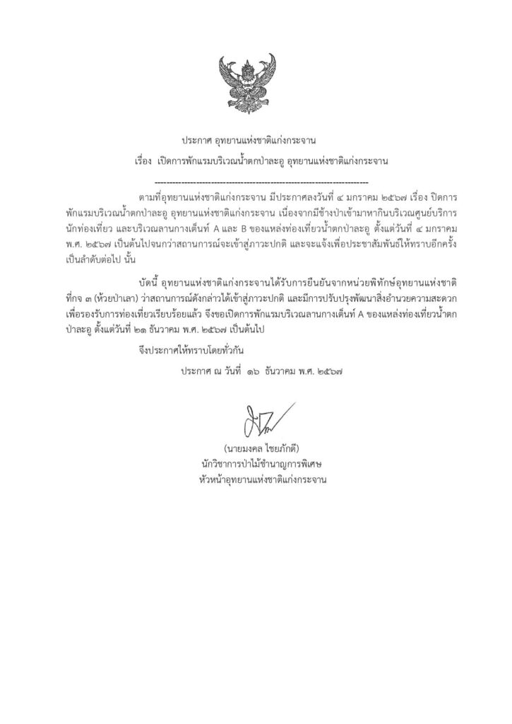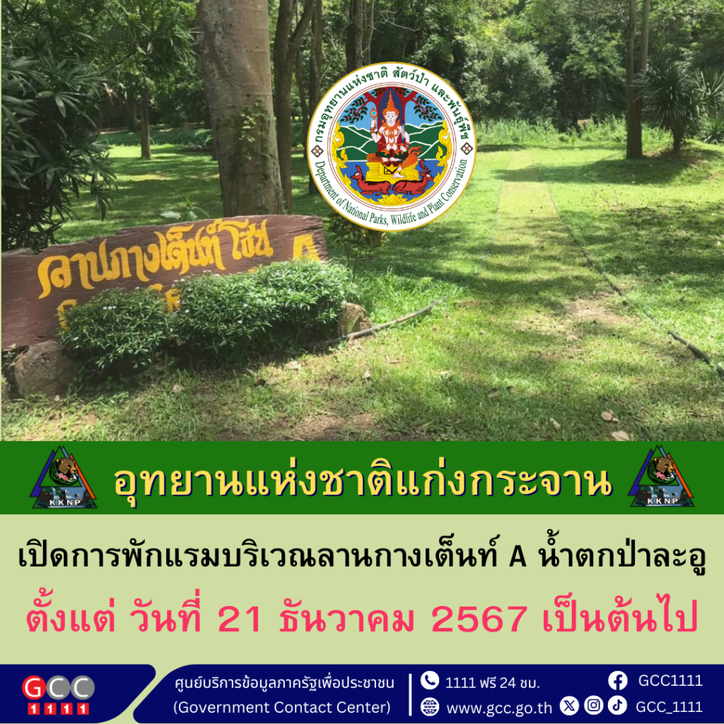 อุทยานแห่งชาติแก่งกระจาน เปิดการพักแรมบริเวณลานกางเต็นท์ A ของแหล่งท่องเที่ยวน้ำตกป่าละอู ตั้งแต่ วันที่ 21 ธันวาคม 2567 เป็นต้นไป เนื่องจากสถานการณ์เข้าสู่ภาวะปกติ และมีการปรับปรุงพัฒนาสิ่งอำนวยความสะดวก เพื่อรองรับการท่องเที่ยวเรียบร้อยแล้ว สอบถามข้อมูลเพิ่มเติมได้ที่ Facebook : อุทยานแห่งชาติแก่งกระจาน – Kaeng Krachan National Park , หมายเลขโทรศัพท์ 0-32-772-311 , 0-32-772-312
