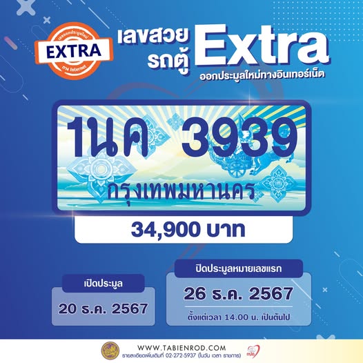 กปถ. เปิดประมูลเลขสวย Extra รถตู้ กทม. ผ่านทางระบบอินเทอร์เน็ต ในวันที่ 20 – 26 ธันวาคม 2567