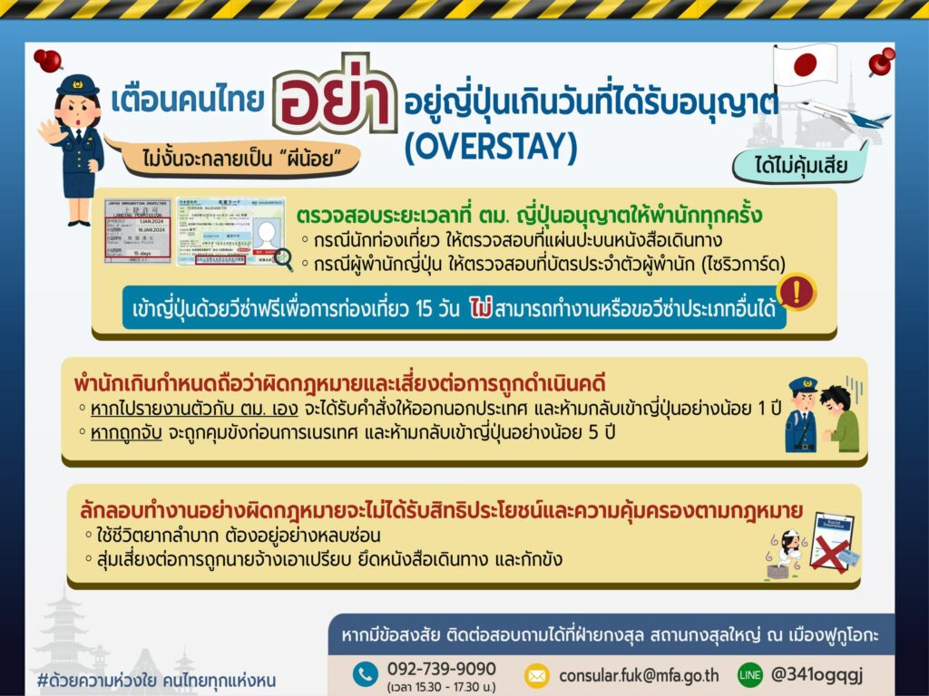 สถานกงสุลใหญ่ ณ เมืองฟูกูโอกะ เตือนคนไทยอย่าอยู่ญี่ปุ่นเกินวันที่ได้รับอนุญาต (OVERSTAY)