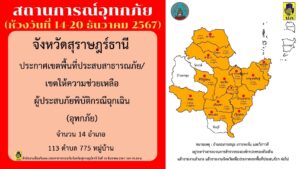 จังหวัดสุราษฎร์ธานี ประกาศเขตพื้นที่ประสบภัย/เขตให้ความช่วยเหลือผู้ประสบภัยพิบัติกรณีฉุกเฉิน ข่าวสารกิจกรรม, สาธารณภัย จังหวัดสุราษฎร์ธานี ประกาศเขตพื้นที่ประสบภัย/เขตให้ความช่วยเหลือผู้ประสบภัยพิบัติกรณีฉุกเฉิน จังหวัดสุราษฎร์ธานี ได้ประกาศเขตพื้นที่ประสบภัย/เขตให้ความช่วยเหลือผู้ประสบภัยพิบัติกรณีฉุกเฉิน (อุทกภัย) จำนวน 14 อำเภอ 113 ตำบล 775 หมู่บ้าน สามารถตรวจสอบพื้นที่ ที่อยู่ในเขตดังกล่าว เพื่อสำรวจและลงทะเบียนรับเงินช่วยเหลือผู้ประสบอุทกภัยในช่วงฤดูฝน ตามมติ ครม. ครัวเรือนละ 9,000 บาท ตามหลักเกณฑ์ที่กำหนด ที่มา : t.ly/VPqnN Post Views: 454 FacebookFacebookXTwitterLINELine