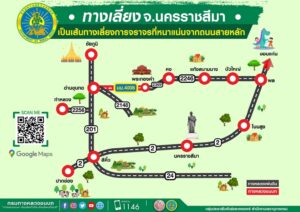 - เส้นทางเลี่ยง ทล.2 (ถนนมิตรภาพ) เริ่มจาก ทล.2 กม.ที่ 102+135 เลี้ยวซ้ายเข้าสู่ ทล.201 เดินทางต่อเป็นระยะทาง 41 กิโลเมตร จนถึง กม.ที่ 41+000 เลี้ยวขวาเข้าสู่ ทล.2148 เดินทางต่อเป็นระยะทาง 3.4 กิโลเมตร จนถึง กม.ที่ 3+400 เลี้ยวซ้ายเข้าสู่ทางหลวงชนบทสาย นม.4008 เดินทางต่อเป็นระยะทาง 23.1 กิโลเมตร จะบรรจบกับ ทล.2369 เดินทางต่อเป็นระยะทาง 30.8 กิโลเมตร จนถึง กม.ที่ 30+800 เข้าสู่ ทล.2246 เดินทางต่อเป็นระยะทาง 65.5 กิโลเมตร จะบรรจบกับ ทล.2 กม.ที่ 257+65 เลี้ยวซ้าย เพื่อเดินทางมุ่งสู่จังหวัดขอนแก่น