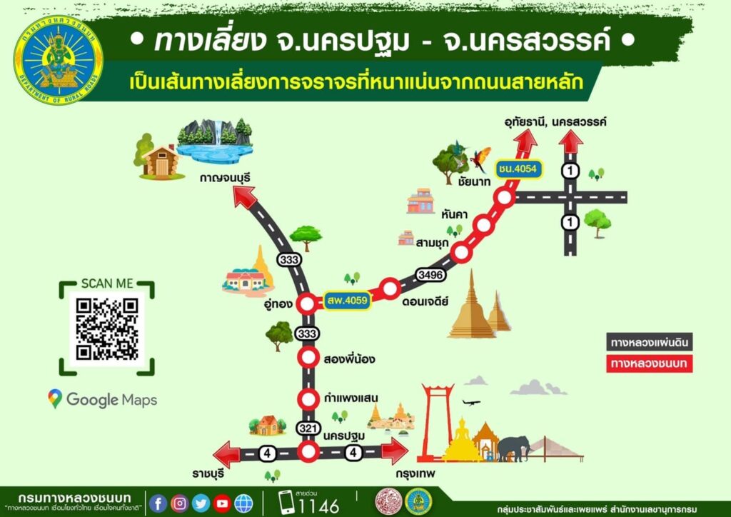 นอกจากนี้ ทช. ได้ดำเนินการติดตั้งป้ายแนะนำเส้นทางเลี่ยงตามโครงข่ายทางหลวงชนบท เพื่ออำนวยความสะดวกและความรวดเร็วในการเดินทางให้กับประชาชน
