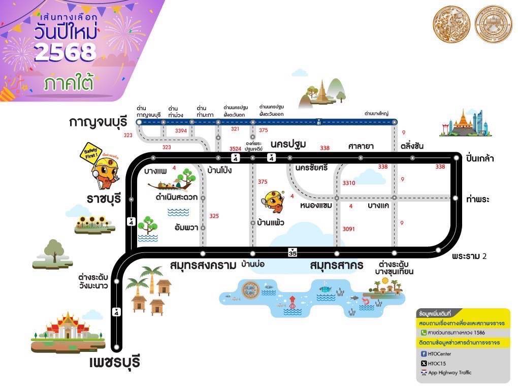 กรมทางหลวง แนะนำเส้นทางเลือกจากกรุงเทพฯสู่ภูมิภาคต่างๆ ช่วงเทศกาลปีใหม่ 2568 เพื่อให้ผู้ใช้ทางได้รับความสะดวกรวดเร็วในการเดินทาง
