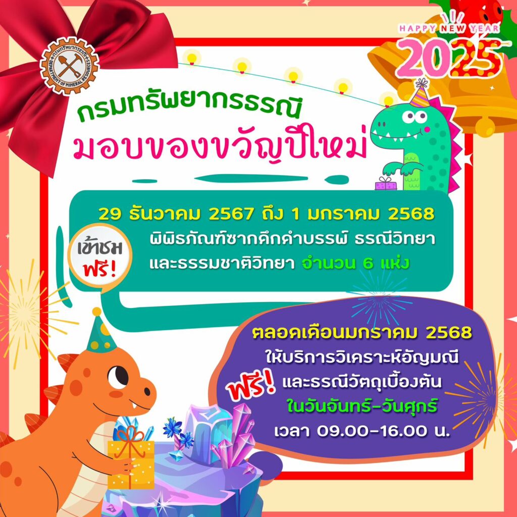 กรมทรัพยากรธรณี มอบของขวัญสุดพิเศษให้ประชาชนในช่วงเทศกาลส่งท้ายปีเก่าต้อนรับปีใหม่ ด้วยกิจกรรมดีๆ และบริการฟรี