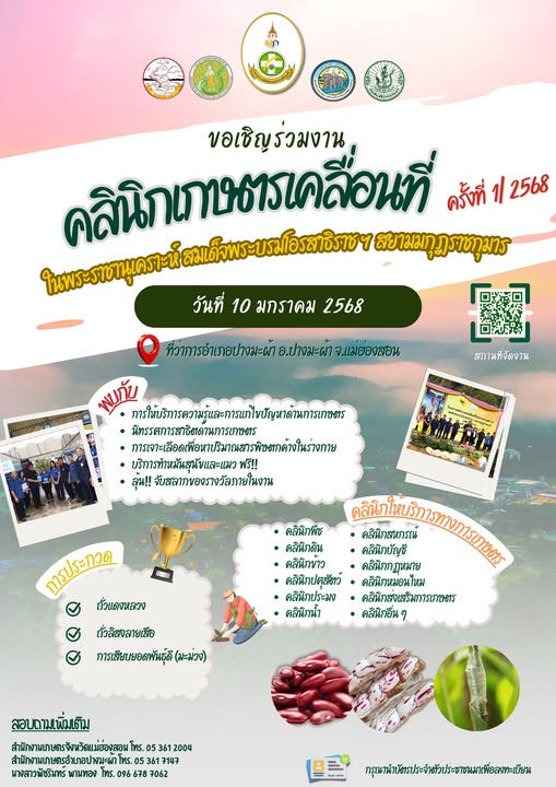 สำนักงานเกษตรจังหวัดแม่ฮ่องสอน เชิญชวนร่วมงาน โครงการคลินิกเกษตรเคลื่อนที่ วันที่ 10 มกราคม 2568