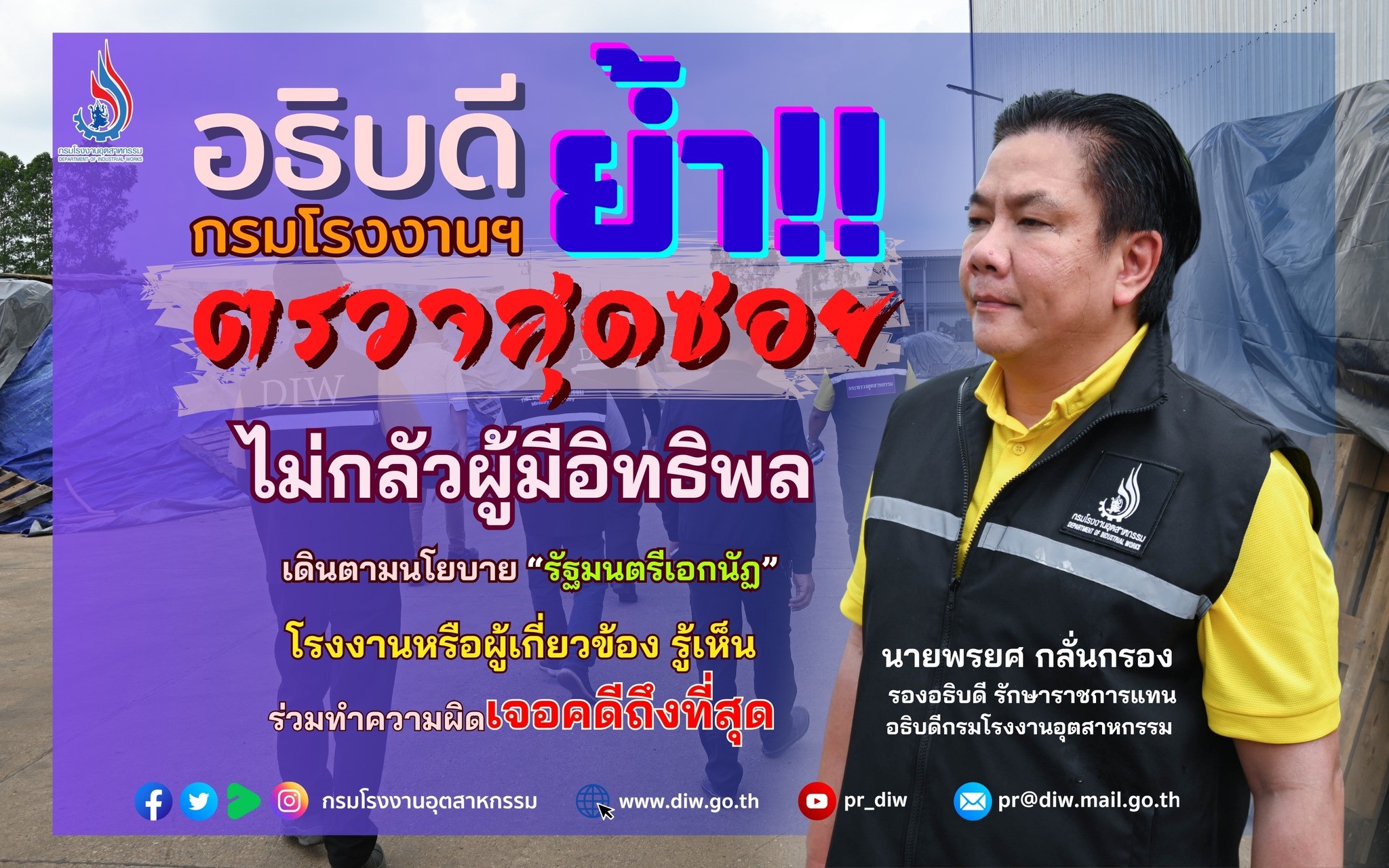อธิบดีกรมโรงงานฯ ย้ำ เดินตามนโยบาย “รัฐมนตรีเอกนัฏ” ตรวจสุดซอย ไม่กลัวผู้มีอิทธิพล โรงงานหรือผู้เกี่ยวข้อง รู้เห็น ร่วมทำความผิด เจอคดีถึงที่สุด