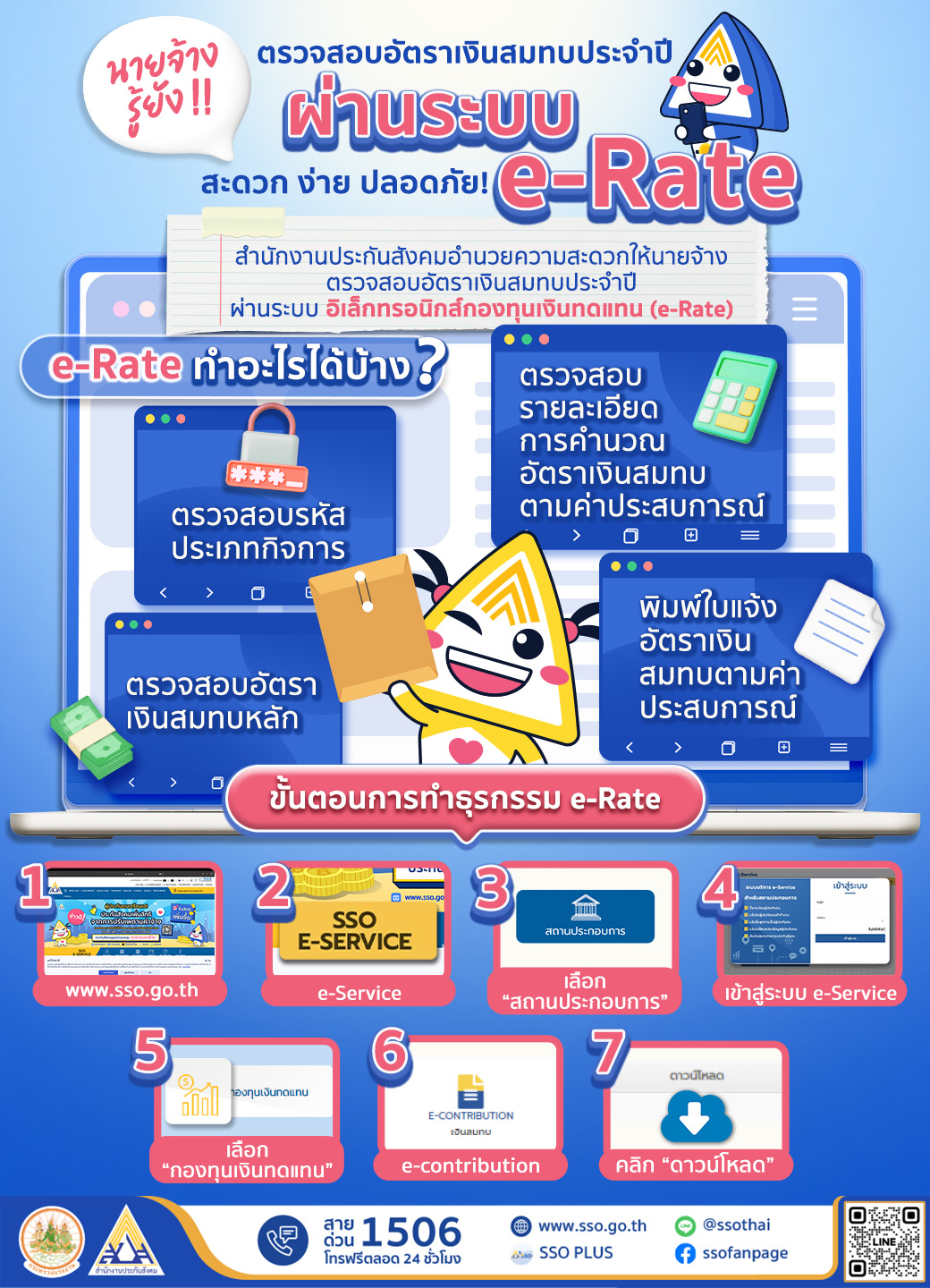 สำนักงานประกันสังคม อำนวยความสะดวกให้นายจ้าง ตรวจสอบอัตราเงินสมทบตามค่าประสบการณ์ประจำปี ผ่านระบบอิเล็กทรอนิกส์กองทุนเงินทดแทน (e-Rate)