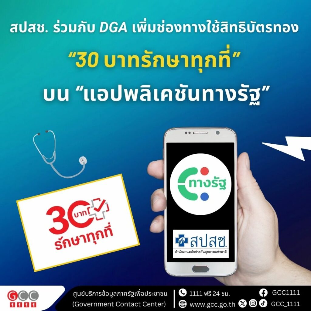 นพ.จเด็จ ธรรมธัชอารี เลขาธิการสำนักงานหลักประกันสุขภาพแห่งชาติ (สปสช.) กล่าวว่า วันนี้จะเป็นอีกก้าวหนึ่งของการพัฒนาระบบหลักประกันสุขภาพแห่งชาติ โดยความร่วมมือระหว่าง สปสช. และ DGA ในการเชื่อมต่อระบบบัตรทองกับ “แอปพลิเคชันทางรัฐ” ที่เป็นซูเปอร์แอปของภาครัฐจากการพัฒนาโดย DGA ที่ได้เชื่อมโยงการบริการจากหน่วยงานราชการต่างๆ เพื่อให้ประชาชนสามารถติดต่อผ่านช่องทางออนไลน์ได้ในแอปเดียว และวันนี้ได้รวมบริการในส่วนของ สปสช. นโยบาย 30 บาทรักษาทุกที่ด้วย