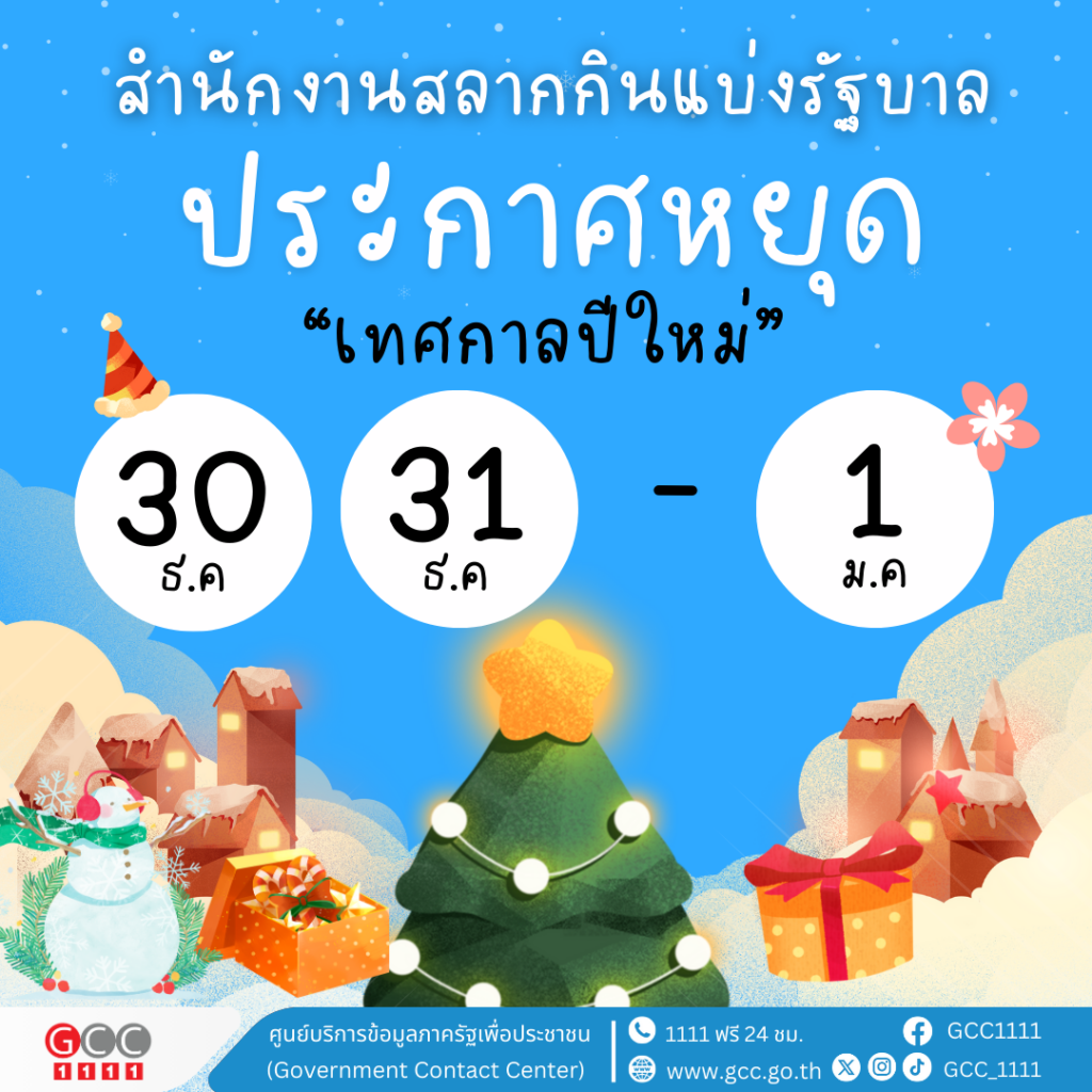 สำนักงานสลากกินแบ่งรัฐบาล แจ้งวันหยุดทำการ วันที่ 30 – 31 ธันวาคม 2568 และวันที่ 1 มกราคม 2568 เนื่องในช่วงเทศกาลปีใหม่ 2568