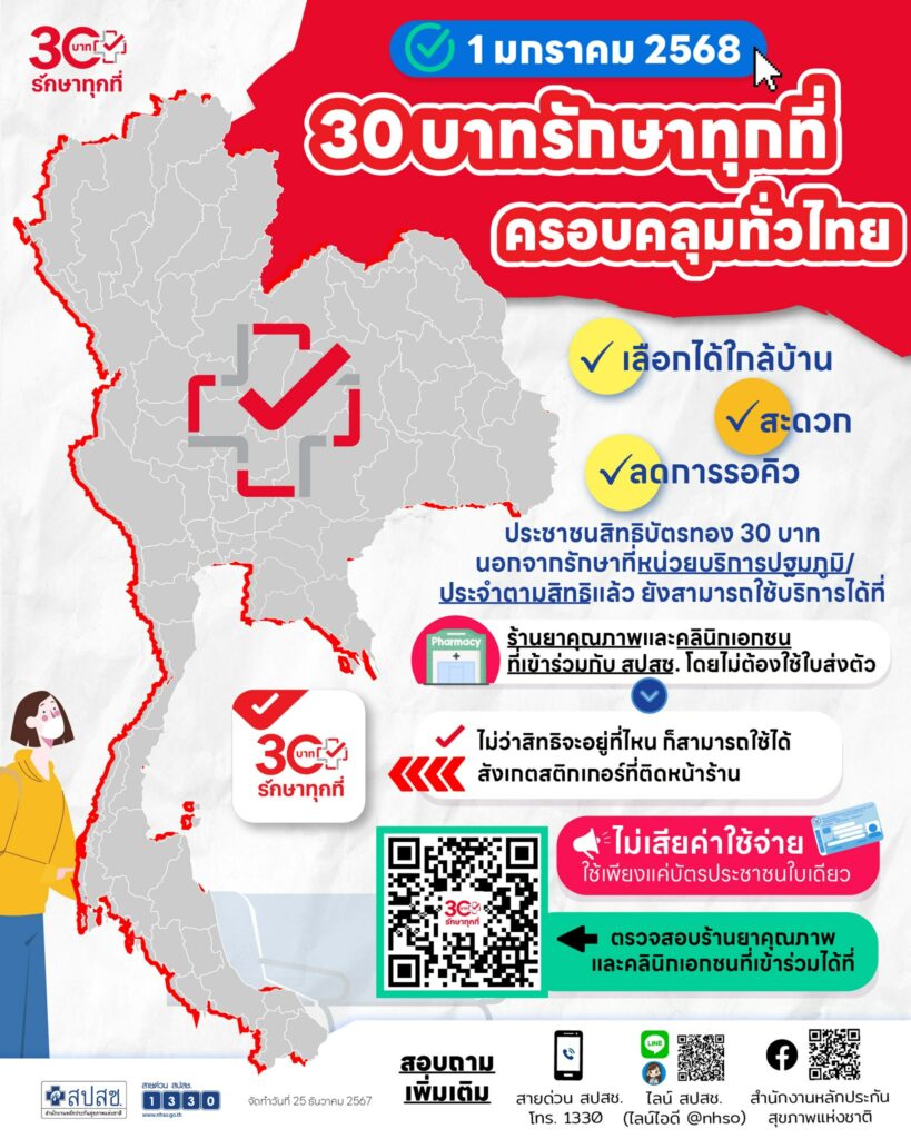 สปสช. แจ้งวันที่ 1 มกราคม 2568 พบกับ 30 บาทรักษาทุกที่ครอบคลุมทั่วประเทศ 77 จังหวัด