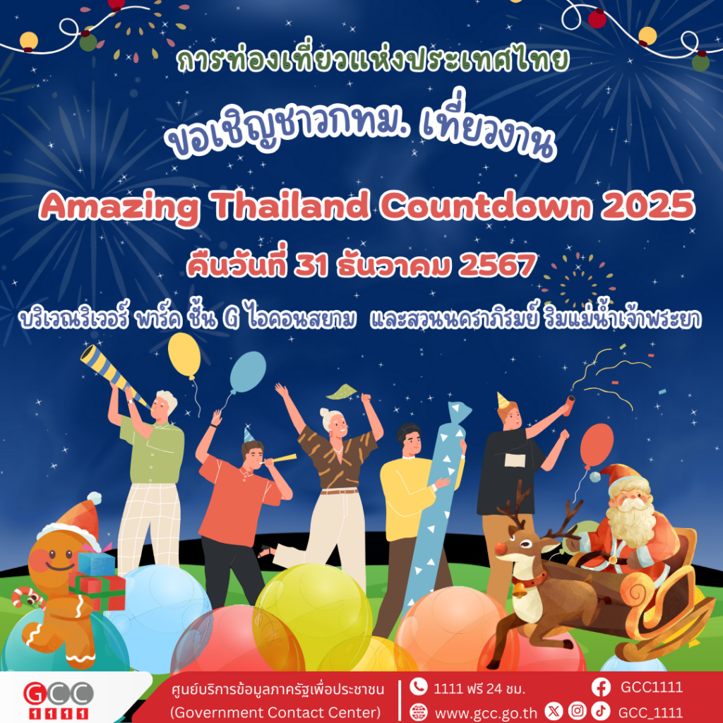 การท่องเที่ยวแห่งประเทศไทย ชวนคนกรุงเทพมหานครไม่ออกไปไหนไกล เที่ยวชมไฮไลท์ งาน Amazing Thailand Countdown 2025 คืนวันที่ 31 ธันวาคม 2567 พร้อมรวมพิกัดแหล่งเทศกาล ‘ส่งท้ายปีเก่า ต้อนรับปีใหม่’ ทั่วประเทศ มั่นใจกระตุ้นเศรษฐกิจแตะ 62,000 ล้านบาท