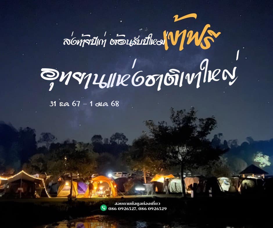 อุทยานแห่งชาติเขาใหญ่ เปิดให้เข้าฟรีวันที่ 31 ธันวาคม 2567 – วันที่ 1 มกราคม 2568 เฉพาะบุคคลชาวไทย และยานพาหน สอบถามข้อมมูลเพิ่มเติมได้ที่ โทร. 0860926527 โทร. 0860926529