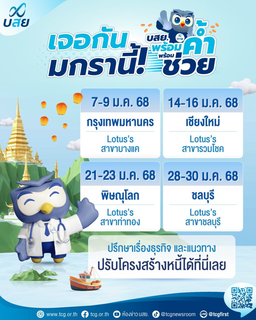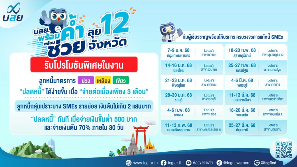 บสย. เชิญเข้าร่วมปรึกษาเรื่องธุรกิจ การหาแหล่งเงินทุน หรือหาแนวทางปรับโครงสร้างหนี้ เดือนมกราคม 2568