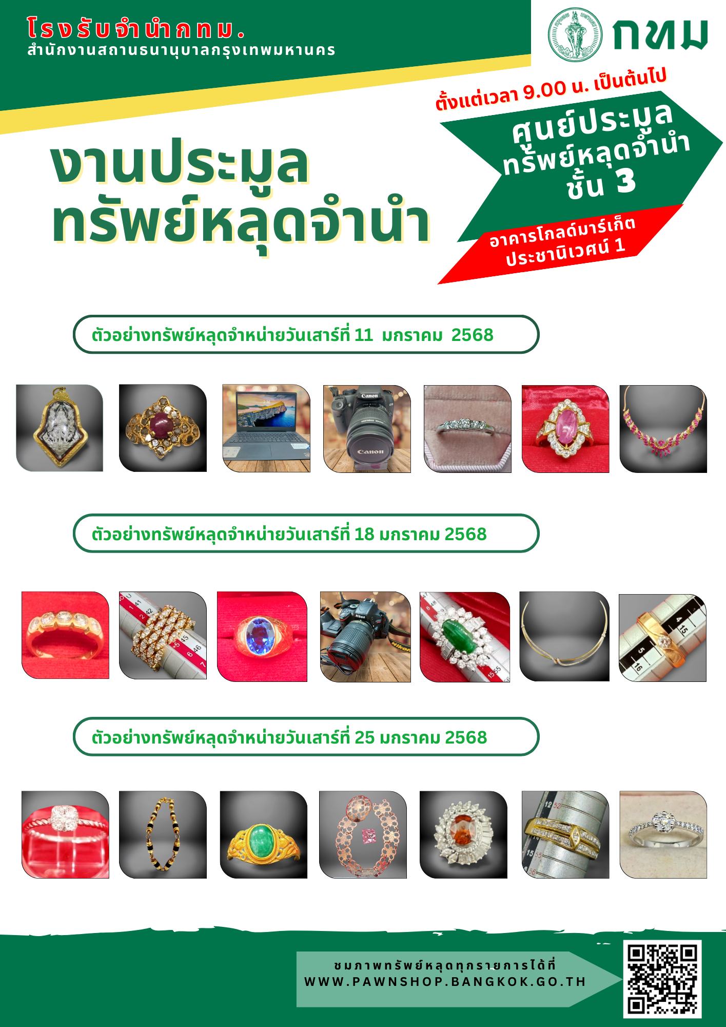 สำนักงานสถานธนานุบาลกรุงเทพมหานคร เปิดประมูลทรัพย์หลุดจำนำ เดือนมกราคม 2568
